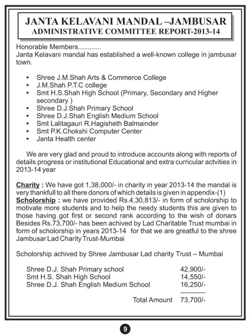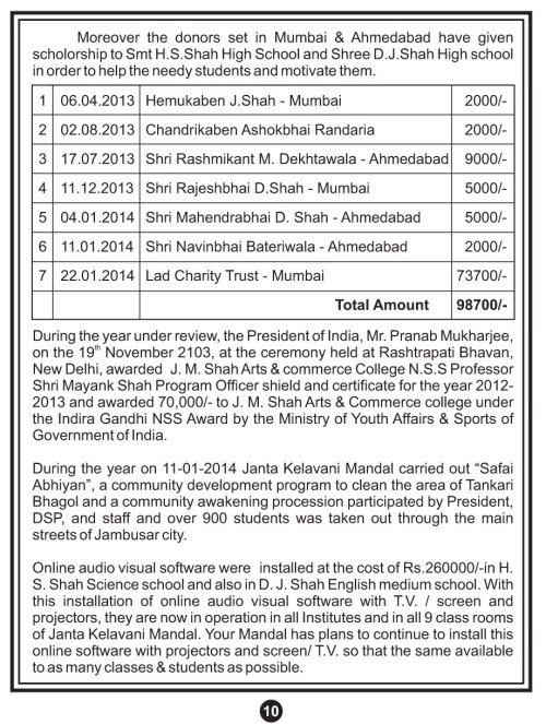 Janta Kelavani Mandal 50 Yearly Annual Report 2013-14